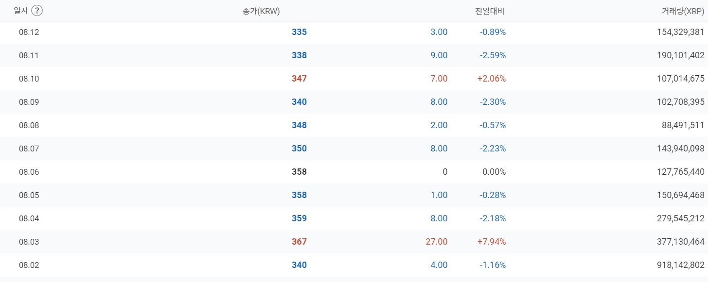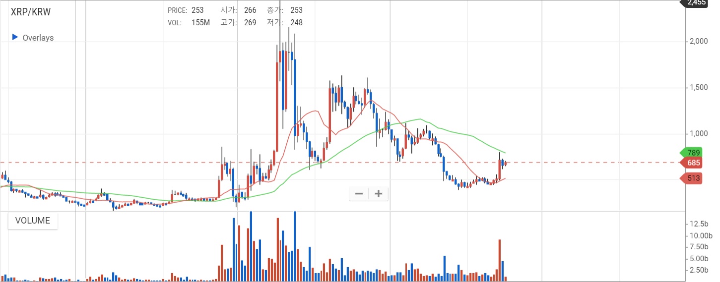 리플코인의 히스토리를 일자별로 보면 200원이었던 가격이 최대 2000원까지 올랐다가 떨어졌는데요. 2000원은 아니더라도 천 원대까지 올랐다 떨어지기를 반복하는 모습을 확인하실 수 있습니다.